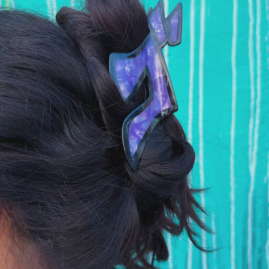 One XL Hair clip. Image shows size comparison between XL and regular menacing hair clip.